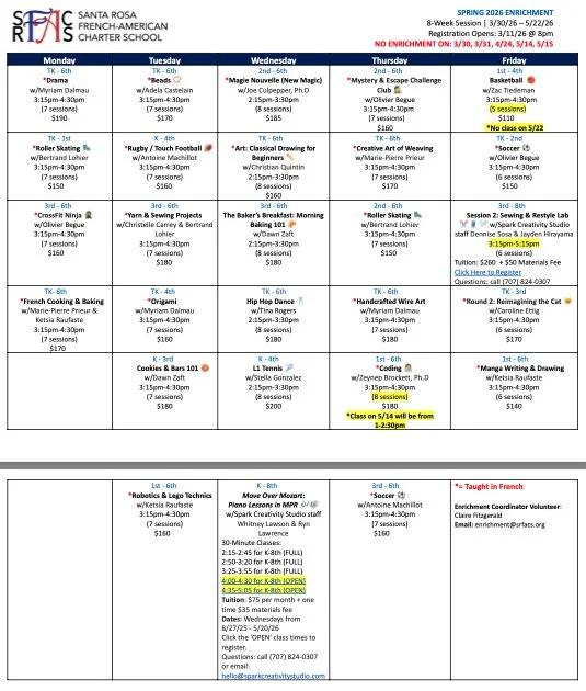 Registration for Spring 2026 enrichment classes begins at 8 p.m. on March 11